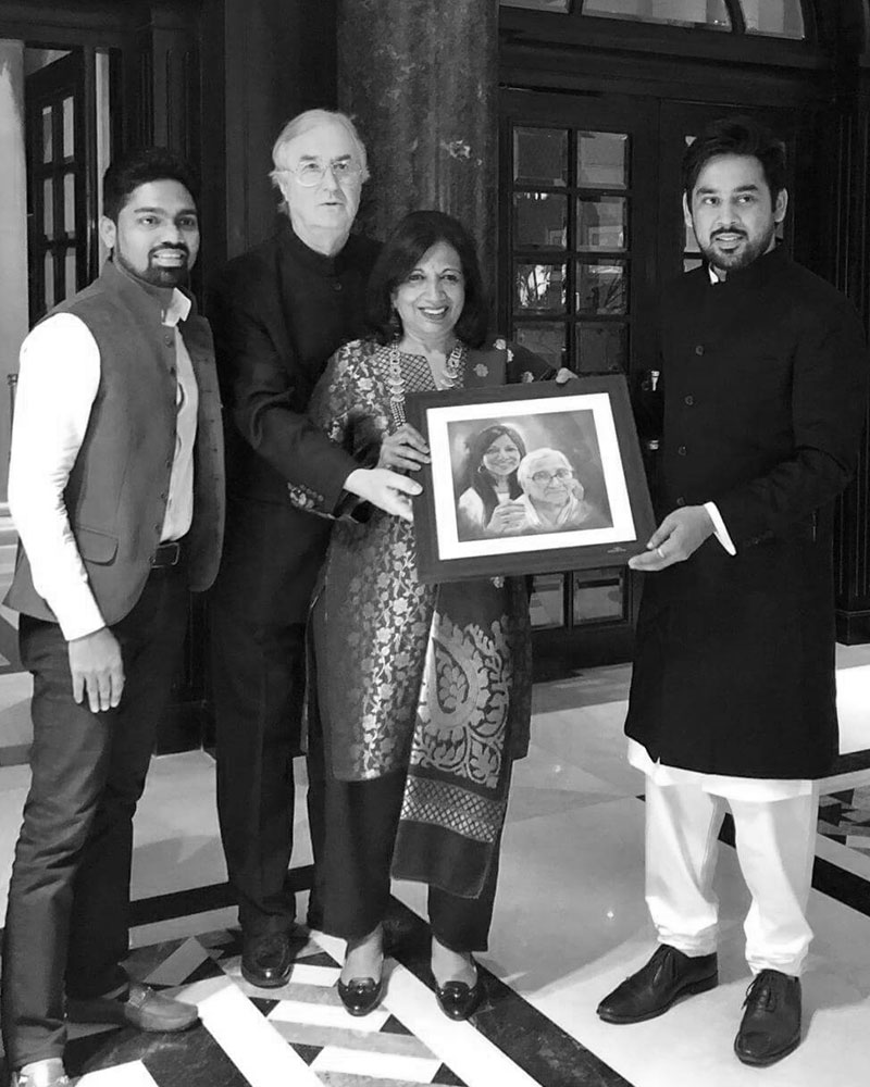 During my journey of hosting over 40 luxury events, I was introduced to 50 local portrait artists who were still looking to get their due and were afraid of the dying legacy of the art form in India. This allowed me to build a platform, I christened Hand Painted Stories, overnight. I combined their talent and my vision to create a win-win situation. A platform like this in India, to give the artists financial and social security was missing and I intended to fulfil that gap. Hand Painted Stories takes bespoke gifting to the next level: all one has to do is select a photo of their choice and the artists hand paint each one in oil, acrylic or watercolours. Well known personalities like Hema Malini, Kiran Mazumdar-Shaw, Rajan Pai, Raveena Tandon and Sri Sri Ravi Shankar have had their memories immortalized.