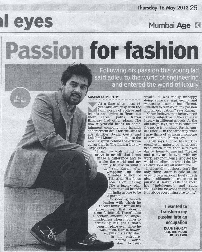 I aim to retire in my mid-30s, whilst ensuring I have proved my metal in the industry. Some important lessons I’ve learnt along the way: follow your instincts, challenge the undone and hold everything you do with a certain conviction. I am inspired by Dr. A.P.J. Abdul Kalam and believe in the religion of Squash, the sport that has made me a better man today!